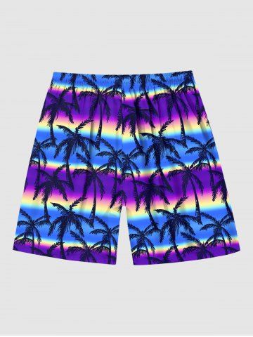 Board Shorts > Plus Size Coconut Tree Ombre Aurora Colorblock Print Pockets Hawaii Beach Shorts For Men