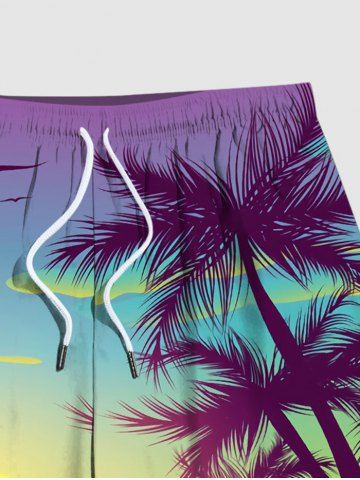 Plus Size Coconut Tree Sunset Sea Print Hawaii Beach Shorts - Multi-a - 7xl