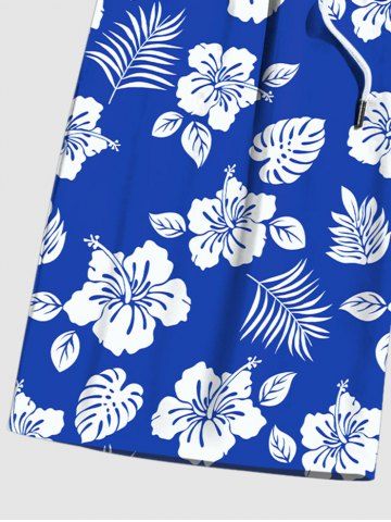 Plus Size Flower Coconut Leaves Print Hawaii Pocket Beach Shorts For Men - Blue - 5xl