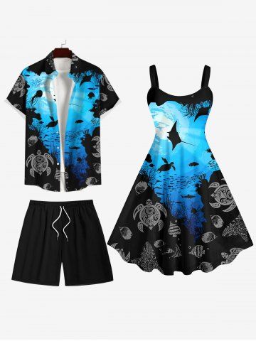 R*****r5Sea Creatures Turtle Fish Colorblock Print Plus Size Matching Hawaii Beach Outfit For CouplesColor: BLACKVery complimented us on our outfits and wanted to know information where we got them