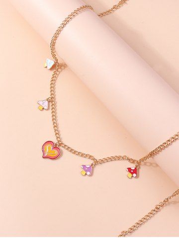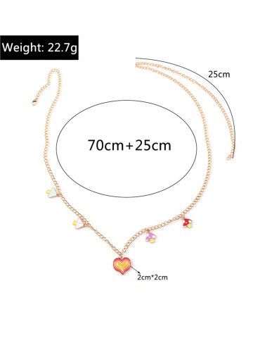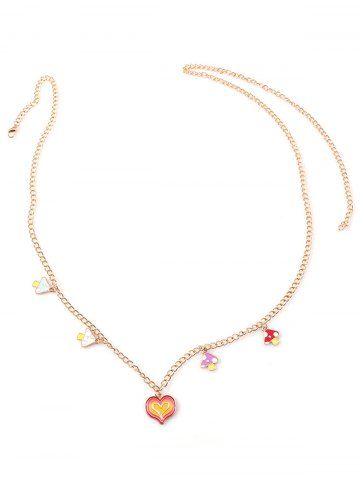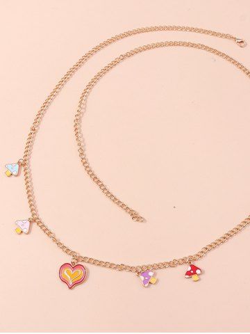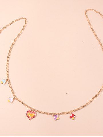 Rainbow Heart Mushroom Charm Waist Chain - Golden