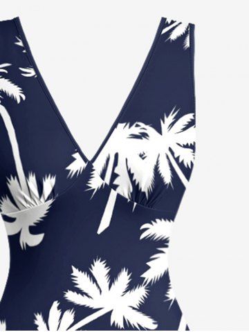 Coconut Tree Print Hawaii Ruffles Split Dress - Cadetblue - Xl
