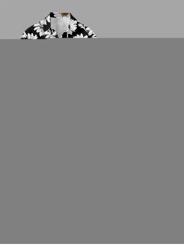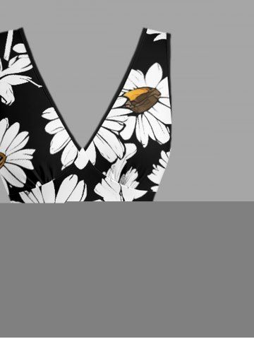 Daisy Flowers Print Hawaii Ruffles Split Surplice Dress - Black - Xs