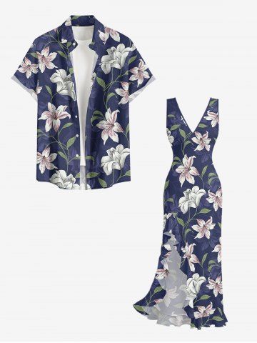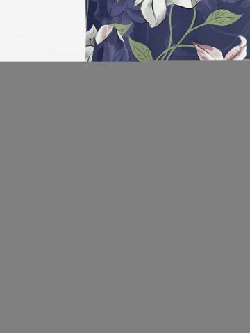 Flower Leaf Branch Print Hawaii Ruffles Split Dress - Concord - Xxxl