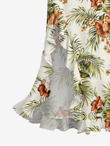 Bodycon Dresses > Hibiscus Flowers Tropical Leaf Print Hawaii Ruffles Split Surplice Dress