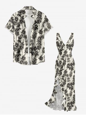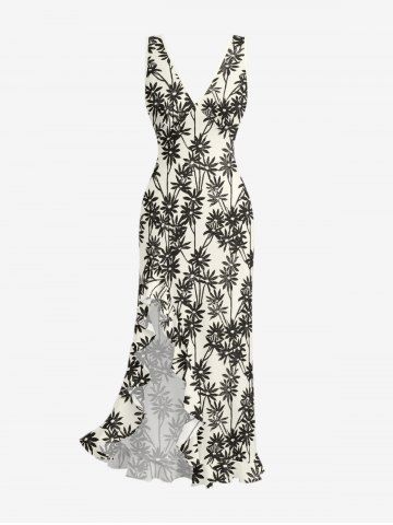 Silhouette Flower Print Hawaii Ruffles Split Dress - Beige - Xs