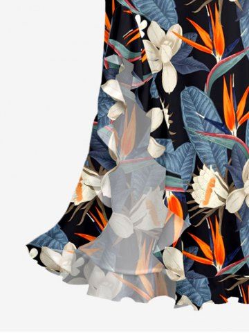 Bodycon Dresses > Tropical Leaf Flower Print Hawaii Ruffles Split Dress