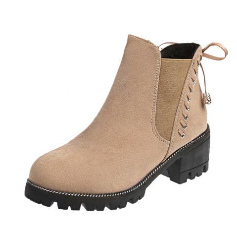 Fashion Bow Round Head Warm Short Boots - Khaki - Eu 35