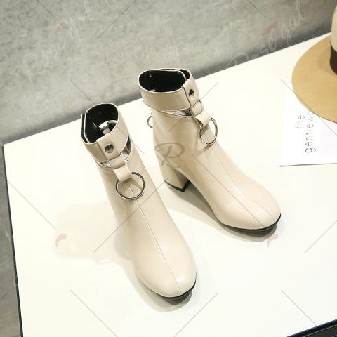 Square Thick with Metal Ring Boots Fashion Decoration - Beige - 39