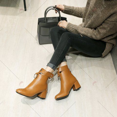 Boots > Square Thick with Metal Ring Boots Fashion Decoration