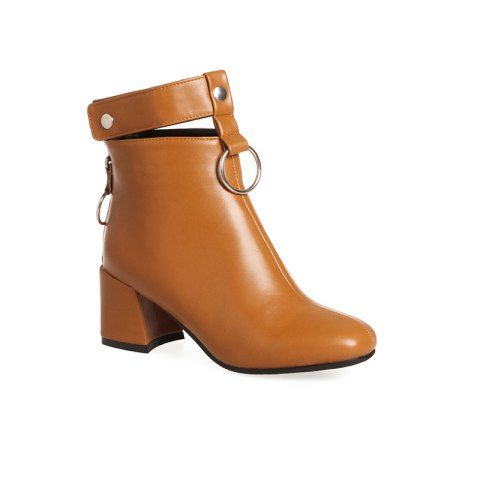 Square Thick with Metal Ring Boots Fashion Decoration - Daisy - 37