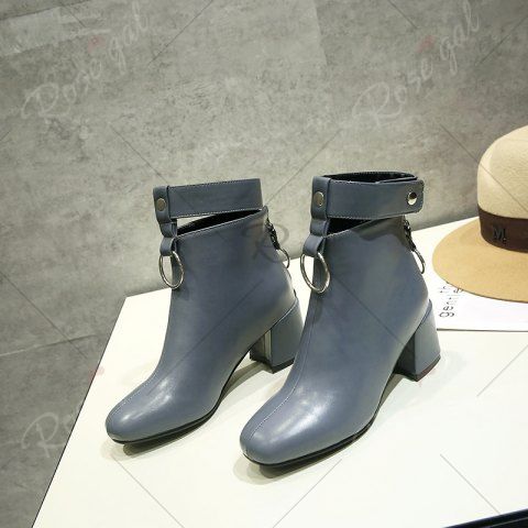 Square Thick with Metal Ring Boots Fashion Decoration - Gray - 43