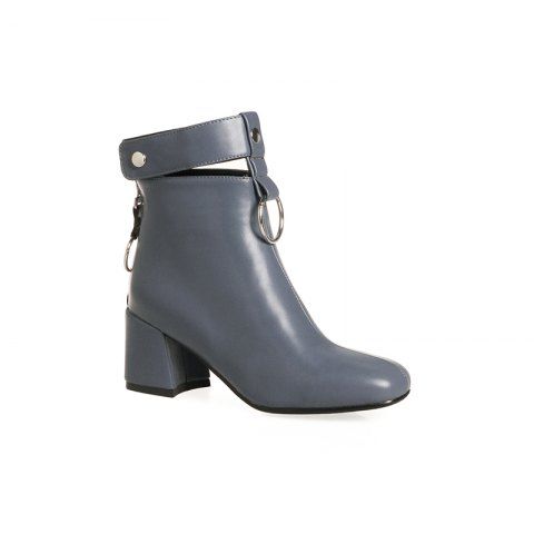 Square Thick with Metal Ring Boots Fashion Decoration - Gray - 39