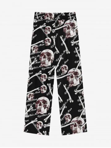 Gothic 3D Skulls Bone Letters Print Drawstring Wide Leg Sweatpants For Men - Black - 7xl