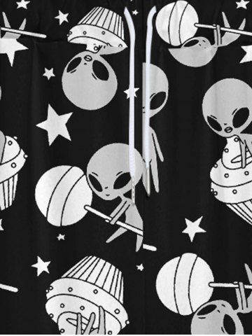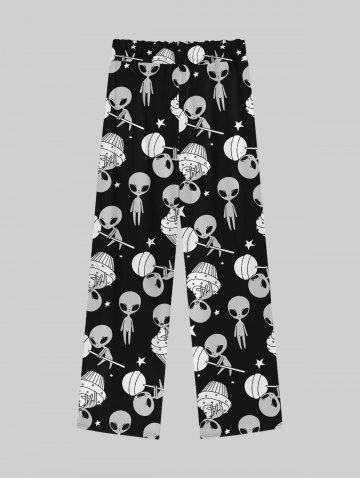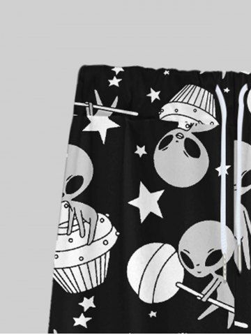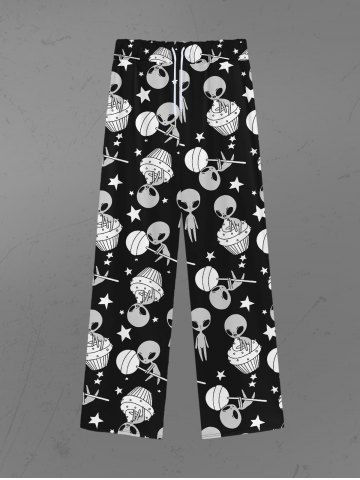 Gothic Alien Candy Ice Cream Stars Print Drawstring Wide Leg Sweatpants For Men - Black - 7xl