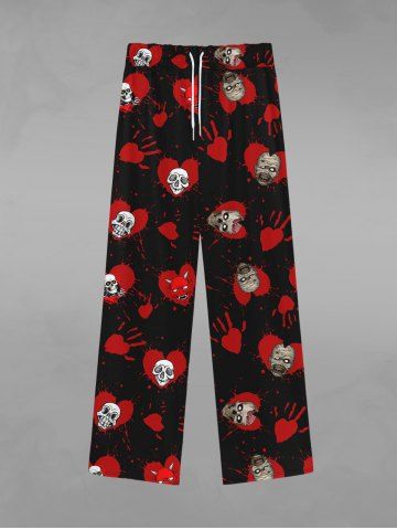 Gothic Bloody Heart Palm Skulls Print Valentines Drawstring Wide Leg Sweatpants For Men - Black - 2xl