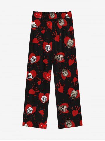 Bottoms > Gothic Bloody Heart Palm Skulls Print Valentines Drawstring Wide Leg Sweatpants For Men