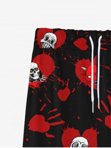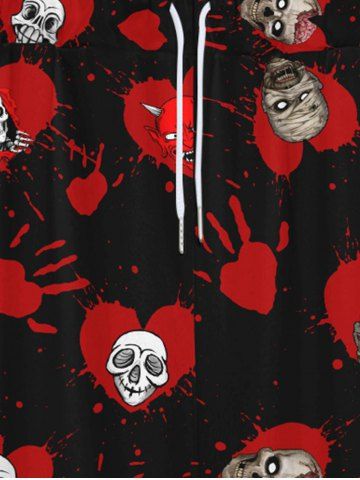 Gothic Bloody Heart Palm Skulls Print Valentines Drawstring Wide Leg Sweatpants For Men - Black - 6xl