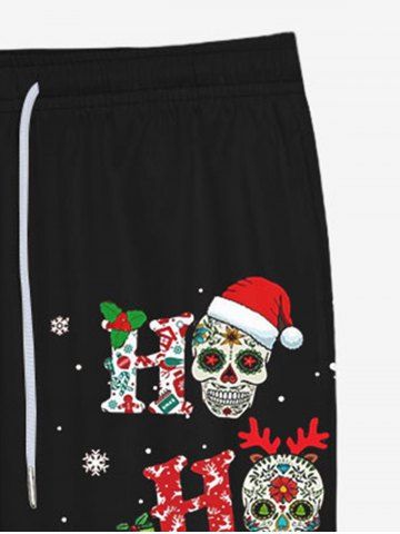 Gothic Christmas Hat Elk Snowflake Skulls Letters Gift Box Print Drawstring Pockets Sweatpants For Men - Black - M