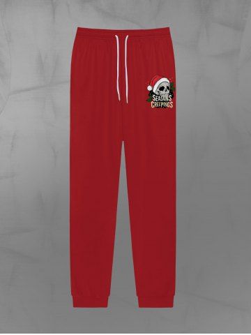 Gothic Christmas Hat Skull Letters Print Drawstring Pocket Sweatpants For Men - Red - 3xl
