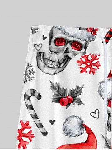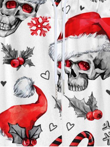 Gothic Christmas Hat Skulls Candy Snowflake Heart Fruit Print Drawstring Wide Leg Sweatpants For Men - White - 2xl