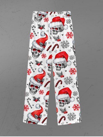 Gothic Christmas Hat Skulls Candy Snowflake Heart Fruit Print Drawstring Wide Leg Sweatpants For Men - White - 4xl