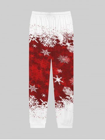 Gothic Christmas Snowflake Colorblock Print Drawstring Sweatpants For Men - Red - Xl