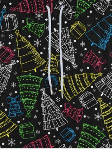 Gothic Christmas Tree Bell Gift Snowflake Print Drawstring Sweatpants For Men - Black - Xl