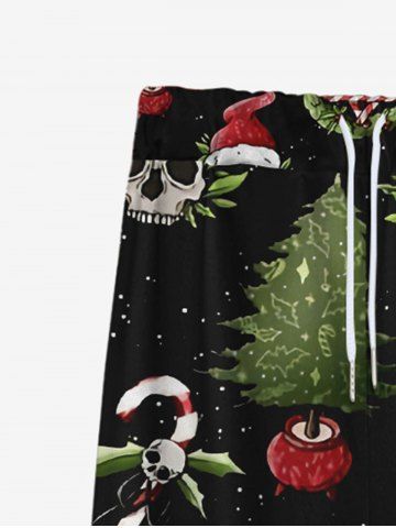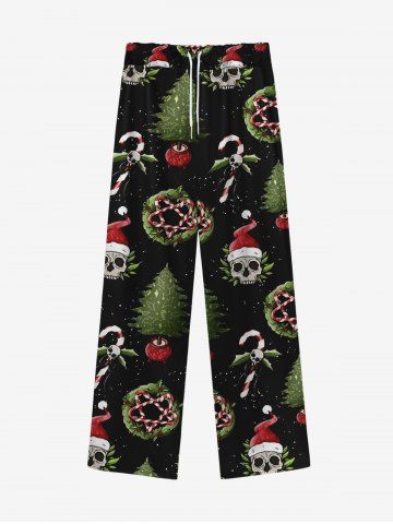 Gothic Christmas Tree Hat Skulls Wreath Candy Print Drawstring Wide Leg Sweatpants For Men - Black - 3xl