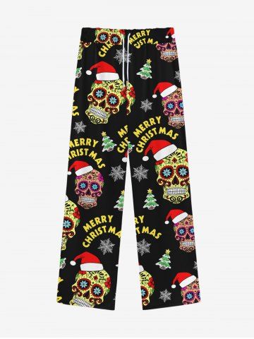 Gothic Christmas Tree Snowflake Hat Skulls Print Drawsting Wide Leg Sweatpants For Men - Black - 6xl
