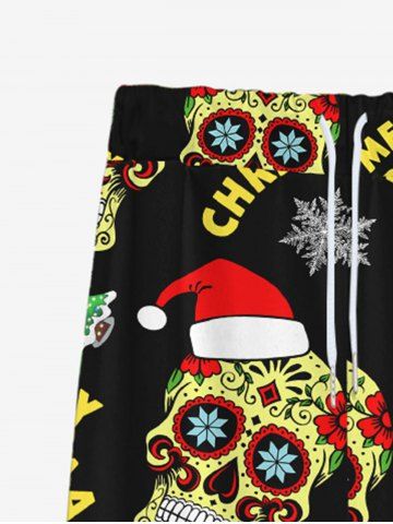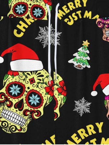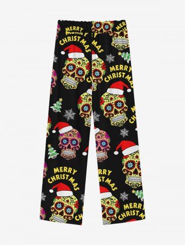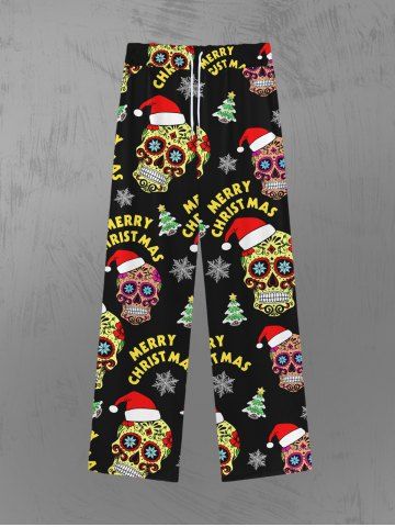 Gothic Christmas Tree Snowflake Hat Skulls Print Drawsting Wide Leg Sweatpants For Men - Black - 8xl