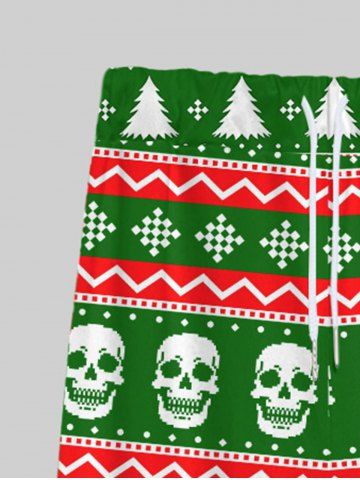 Gothic Christmas Tree Snowflake Striped Skulls Print Wide Leg Pull On Drawstring Sweatpants For Men - Green - 3xl