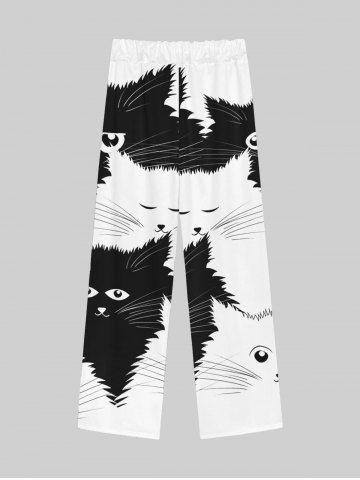 Gothic Cut Cat Print Drawstring Pull On Wide Leg Sweatpants For Men - Black - 3xl