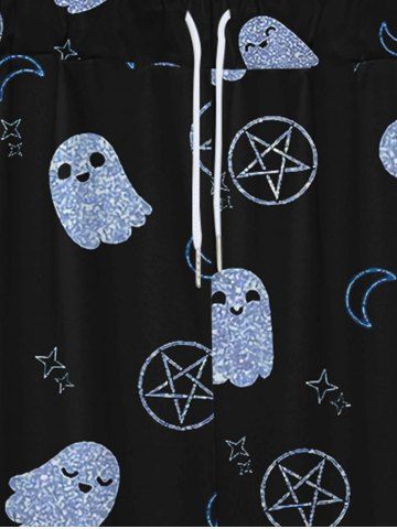 Gothic Cute Ghost Moon Star Print Drawstring Wide Leg Sweatpants For Men - Black - 5xl
