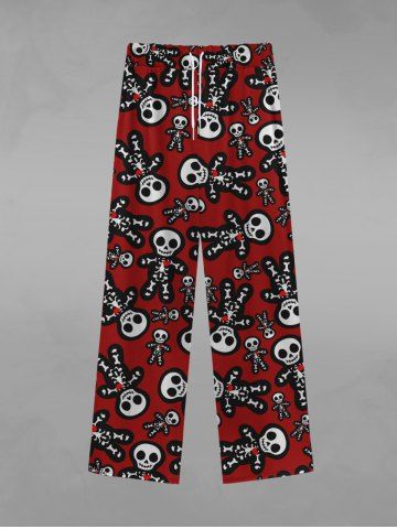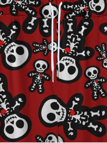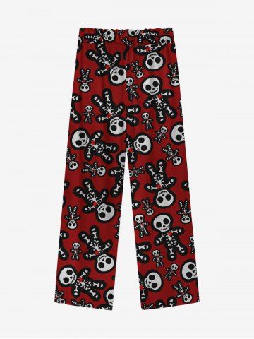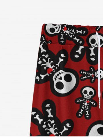 Gothic Cute Skulls Skeleton Gingerbread Print Christmas Drawstring Wide Leg Sweatpants For Men - Red - 2xl
