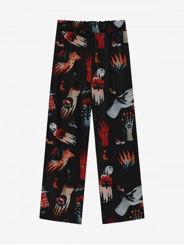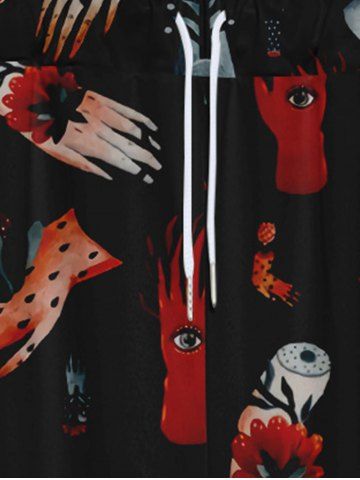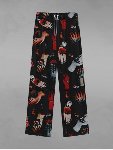 Gothic Distressed Hand Eye Flower Print Drawstring Wide Leg Sweatpants For Men - Black - 7xl
