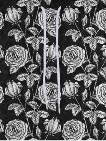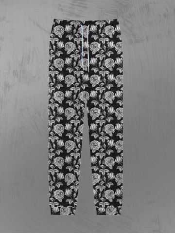 Gothic Distressed Rose Flower Print Pocket Drawstring Sweatpants For Men - Black - M