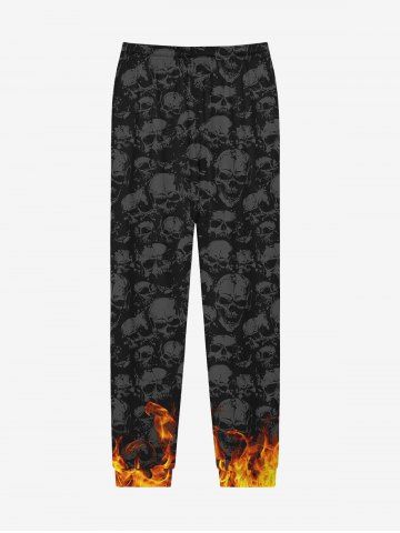 Gothic Distressed Skulls Fire Flame Print Pocket Drawstring Sweatpants For Men - Black - M