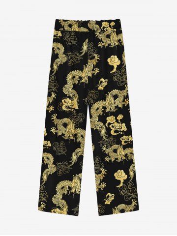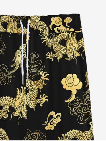 Gothic Dragon Cloud Print Drawstring Wide Leg Sweatpants For Men - Yellow - 2xl