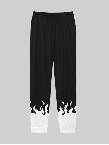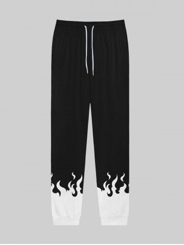 Gothic Flame Colorblock Print Pockets Drawstring Jogger Pants For Men - Black - Xl