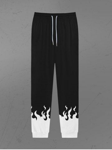 Gothic Flame Colorblock Print Pockets Drawstring Jogger Pants For Men - Black - 3xl