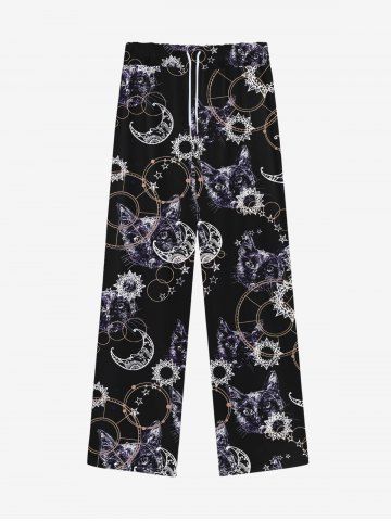 Gothic Galaxy Moon Star Cat Bubble Print Wide Leg Drawstring Sweatpants For Men - Black - 3xl