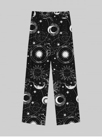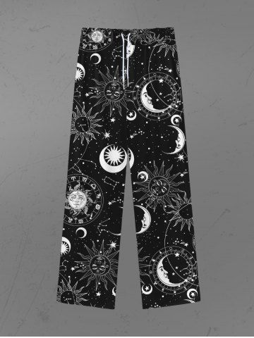 Gothic Galaxy Sun Moon Star Print Wide Leg Drawstring Sweatpants For Men - Black - 4xl
