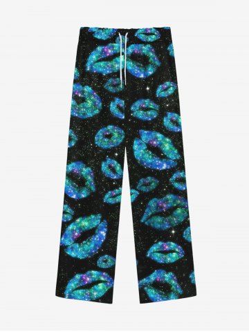 Bottoms > Gothic Glitter Lip Galaxy Print Valentines Drawstring Wide Leg Sweatpants For Men