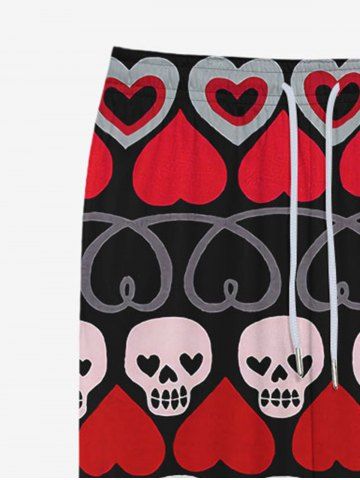 Gothic Heart Skulls Striped Print Pocket Drawstring Valentines Sweatpants For Men - Black - M