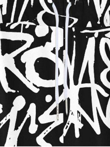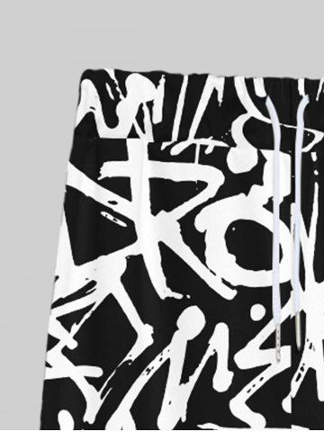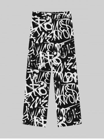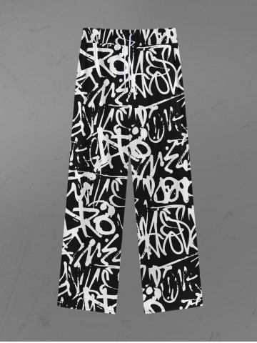 Gothic Messed Letters Print Drawstring Wide Leg Sweatpants For Men - Black - 6xl