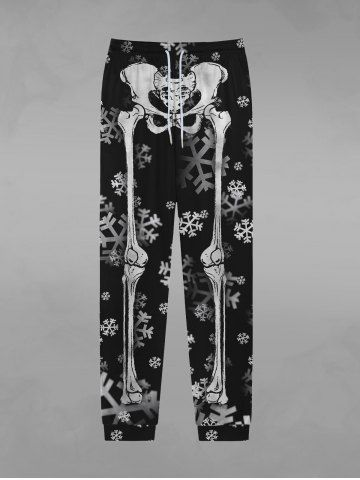 Gothic Ombre Snowflake Skeleton Print Christmas Drawstring Pocket Sweatpants For Men - Black - Xs