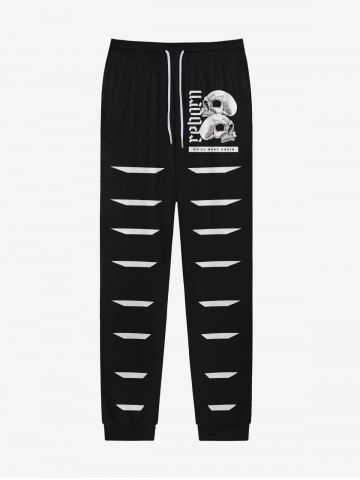 Gothic Ripped Skull Letters Print Drawstring Jogger Sweatpants For Men - Black - 3xl