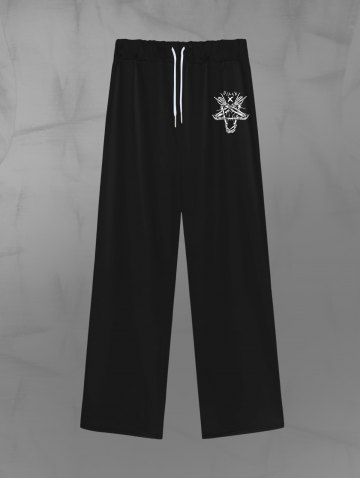 Gothic Skeleton Claws Print Drawstring Wide Leg Sweatpants For Men - Black - Xl