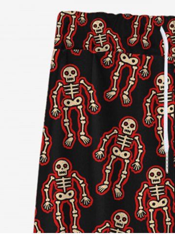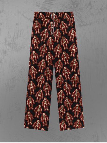 Gothic Skeleton Gingerbread Print Christmas Drawstring Wide Leg Sweatpants For Men - Black - 4xl